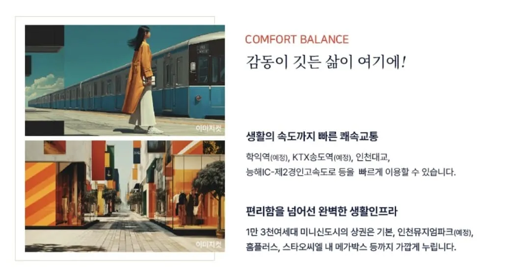교육과 생활 인프라도 갖췄습니다. 단지 인근에 초등학교(예정)를 비롯해 중·고교(예정)가 도보권에 위치하고, 대규모 상업·문화·업무지구인 ‘스타오씨엘’이 인접해 있습니다. 스타오씨엘에는 인천뮤지엄파크, 영화관, 쇼핑시설 등 다양한 생활편의시설이 들어설 예정이며, 스트리트형 상권과 문화특화가로도 함께 조성됩니다.